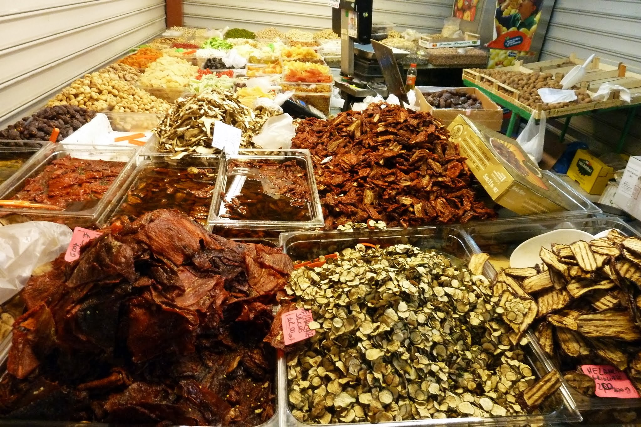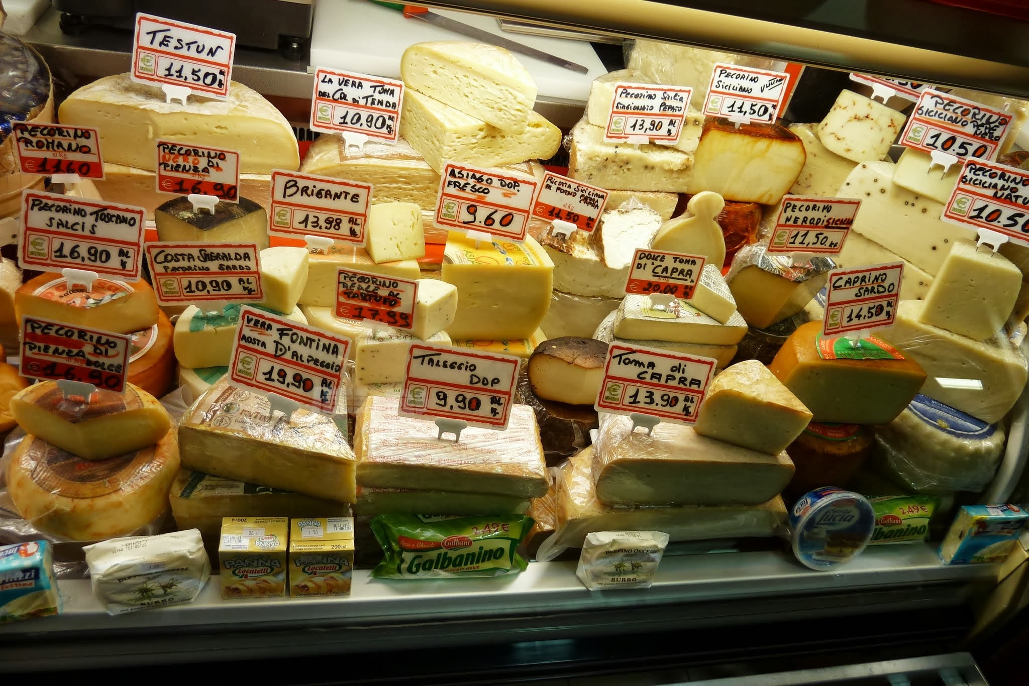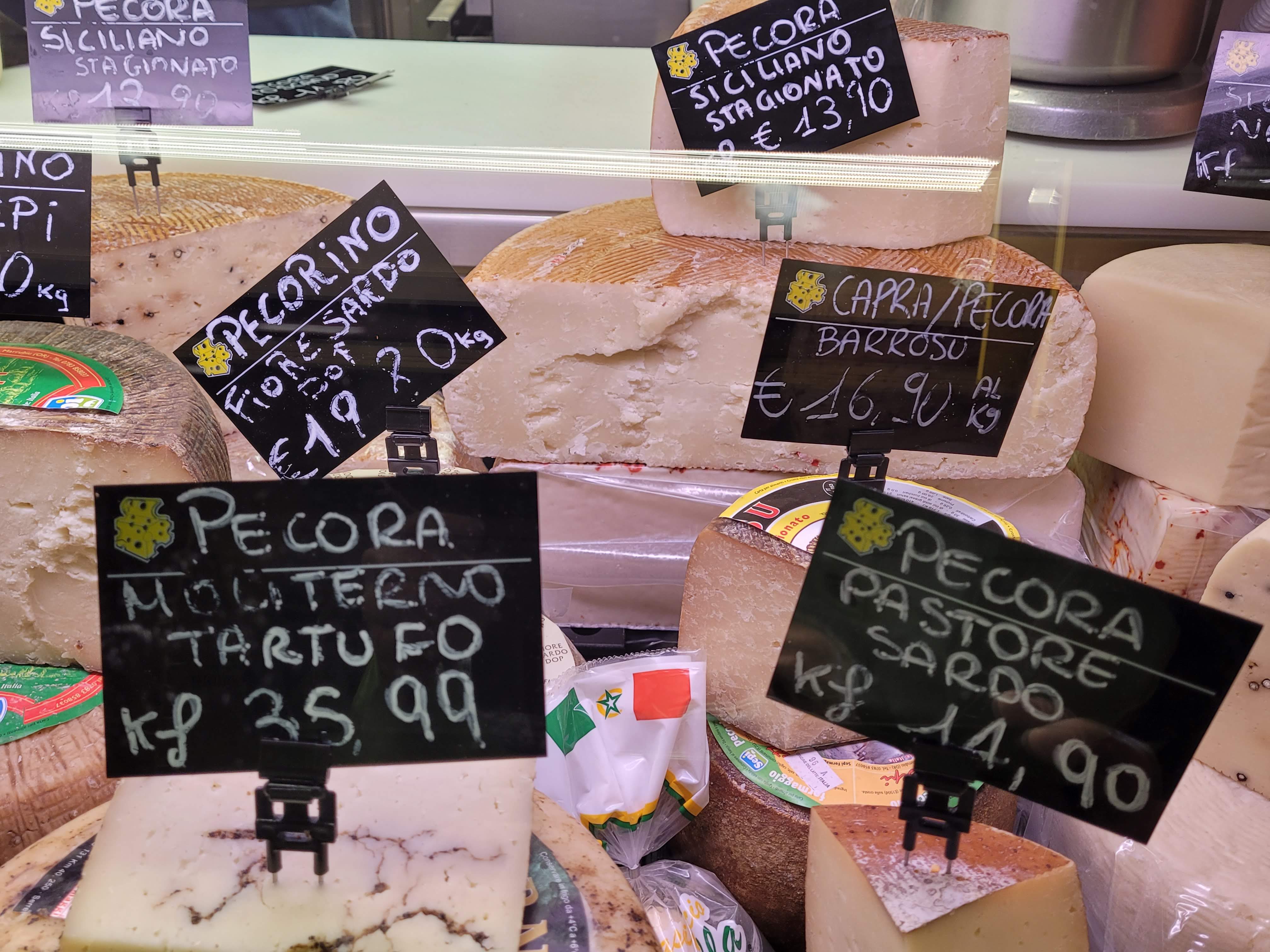 Markedet i Ventimiglia bugner med oste, kød, fisk og masser af friske grøntsager.