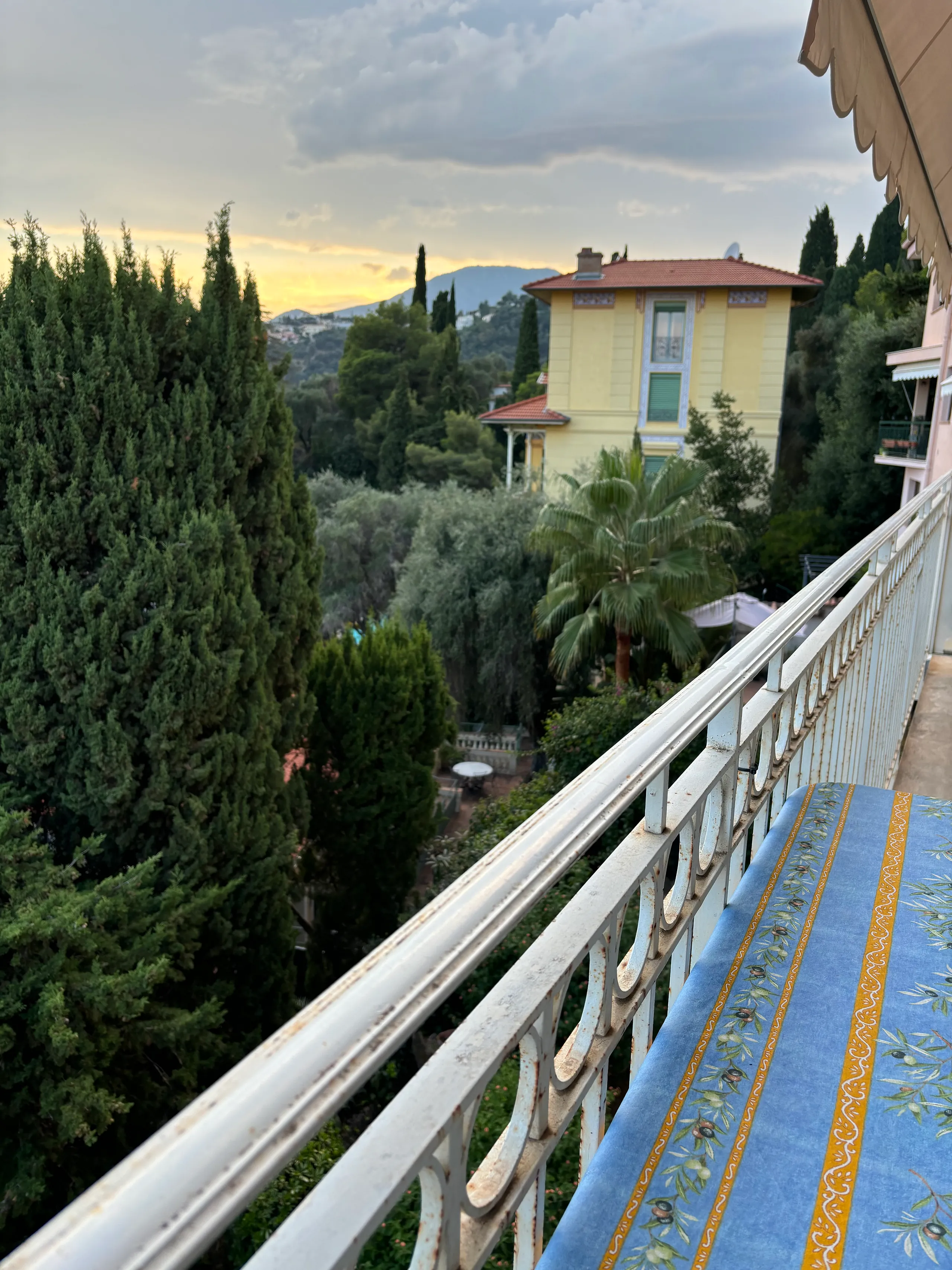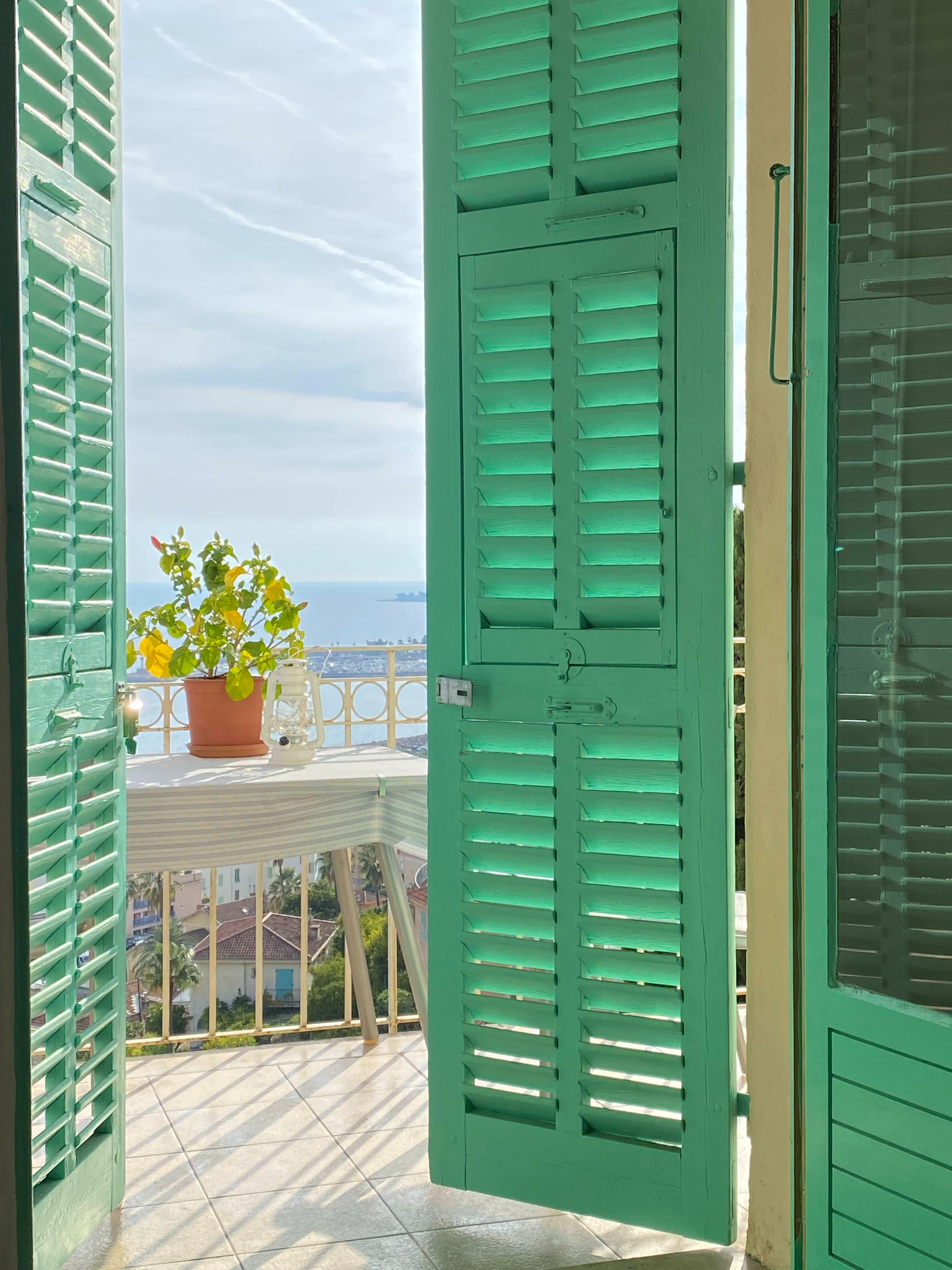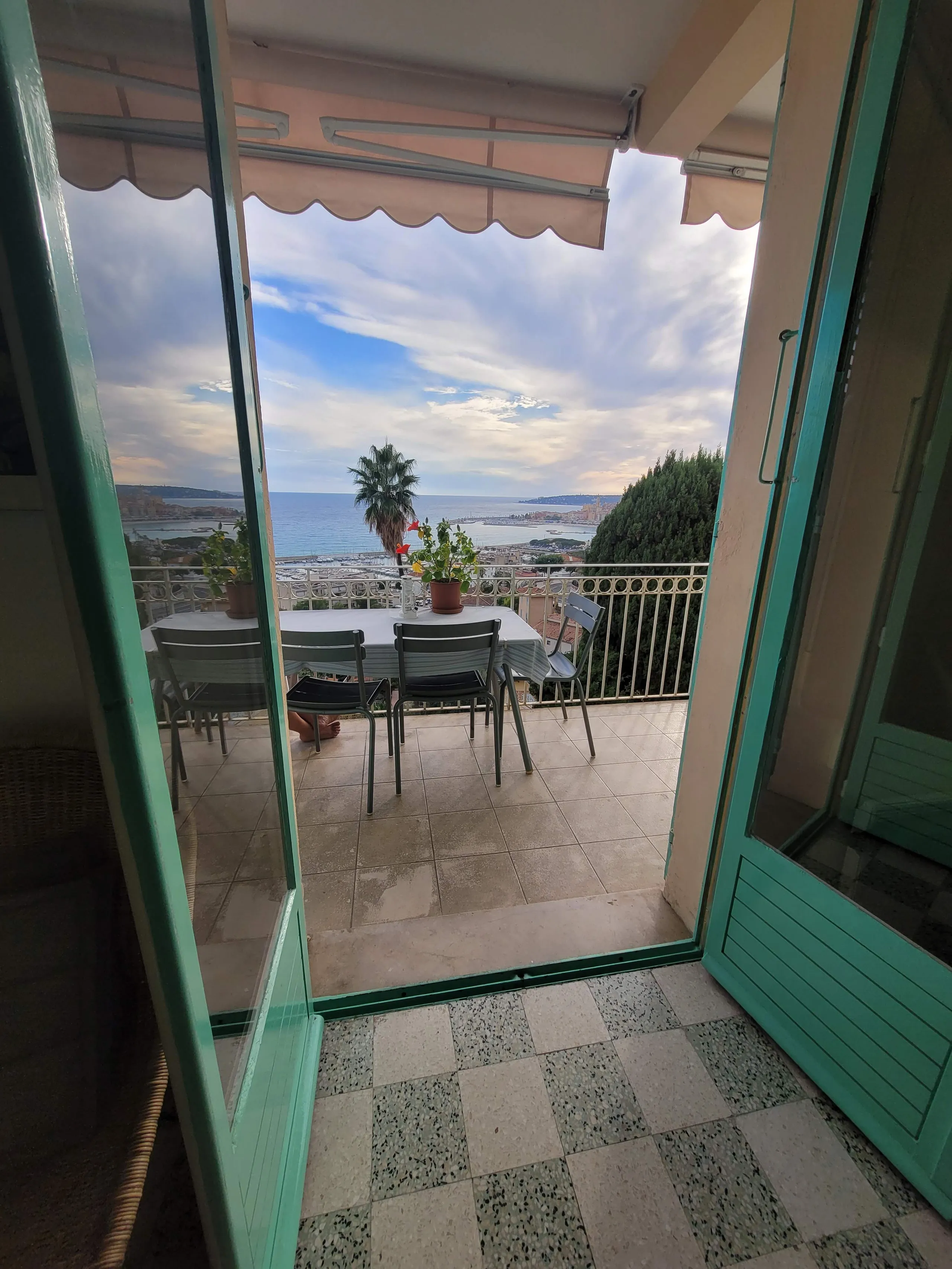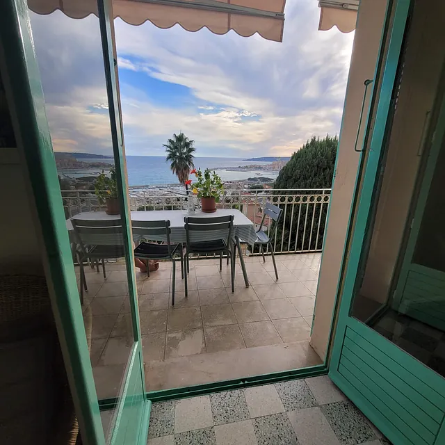 Lejligheden er en lille, ældre fransk lejlighed, ca 55 kvm, bygget ca. 1930, traditionelt fransk indrettet med skodder og stor solvendt terrasse med panoramaudsigt over Middelhavet og adskillige markiser til skygge for solen.