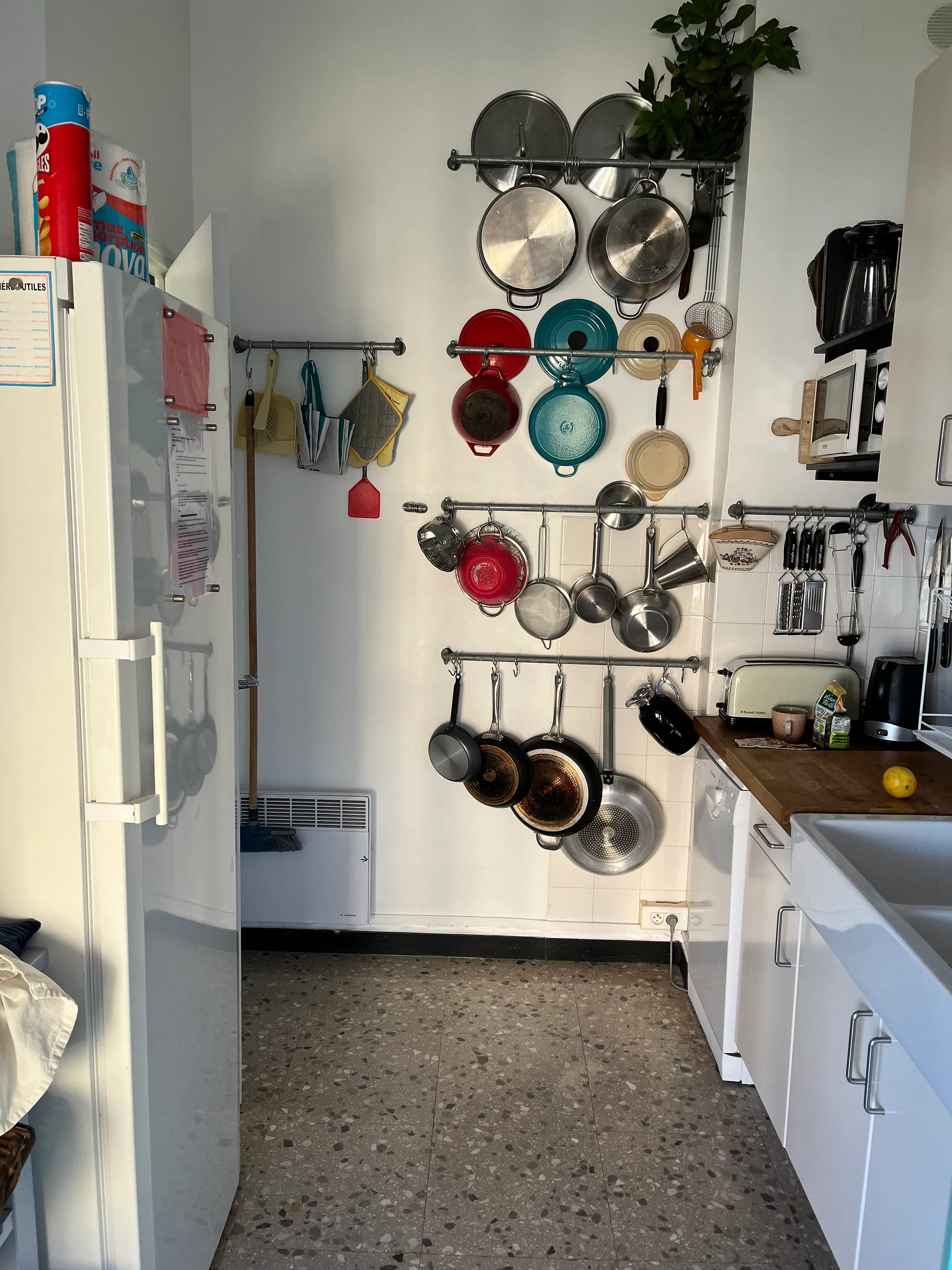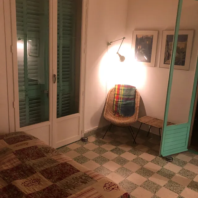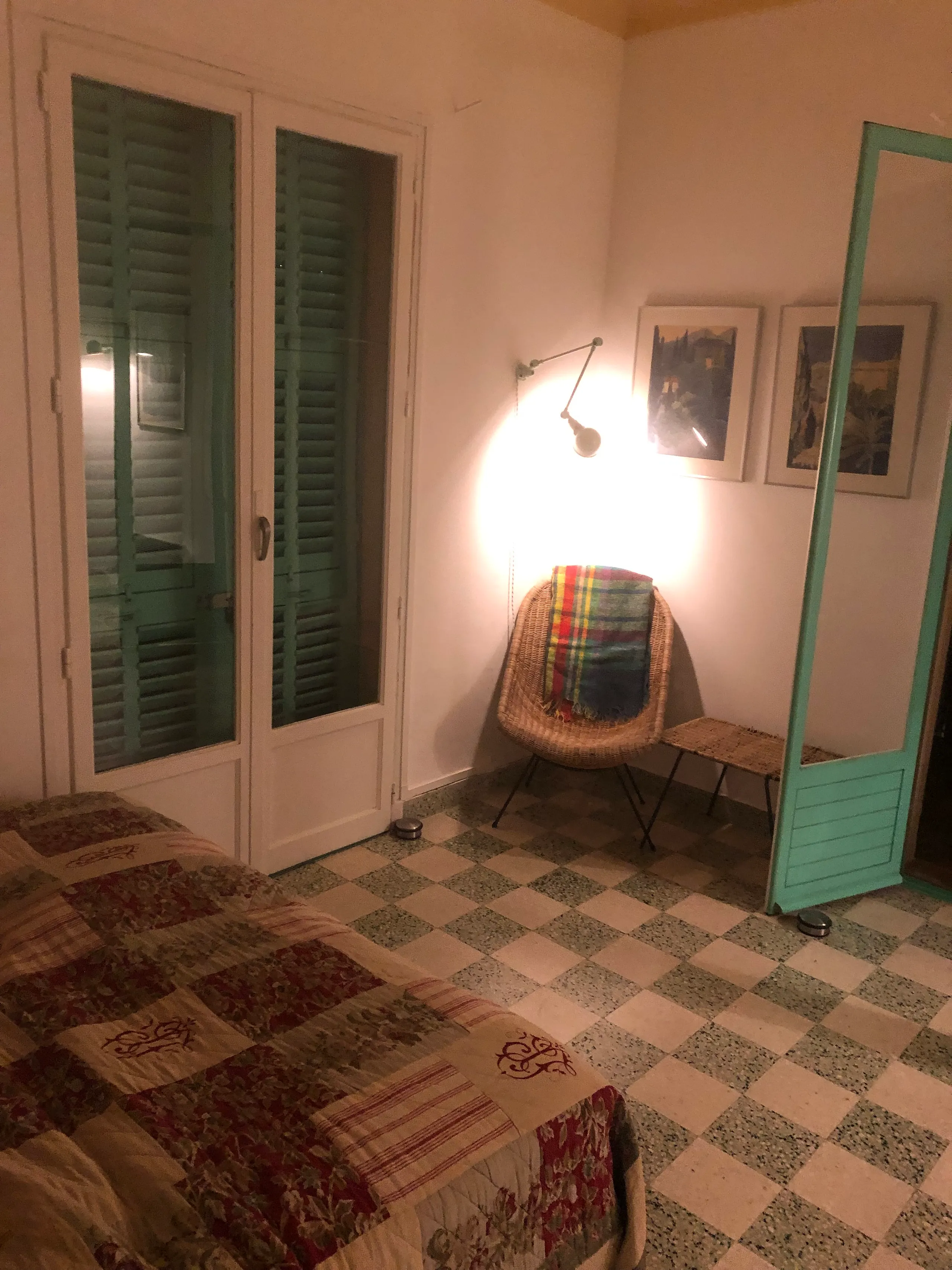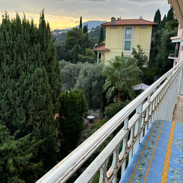 Lejligheden er en lille, ældre fransk lejlighed, ca 55 kvm, bygget ca. 1930, traditionelt fransk indrettet med skodder og stor solvendt terrasse med panoramaudsigt over Middelhavet og adskillige markiser til skygge for solen.